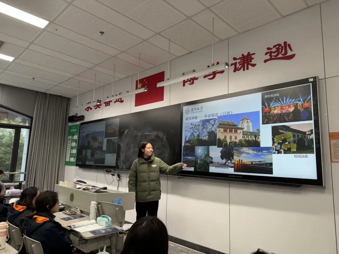 这个寒假,厦门大学“鹭岛燕语”实践队奔赴南京外国语学校,为学弟学妹带来一场干货满满的宣讲。从厦园风采、学科优势到备考秘籍、专业解读,再到真诚的互动答疑,用学长学姐的亲身经历,为少年们的升学之路拨开迷雾、传递力量。