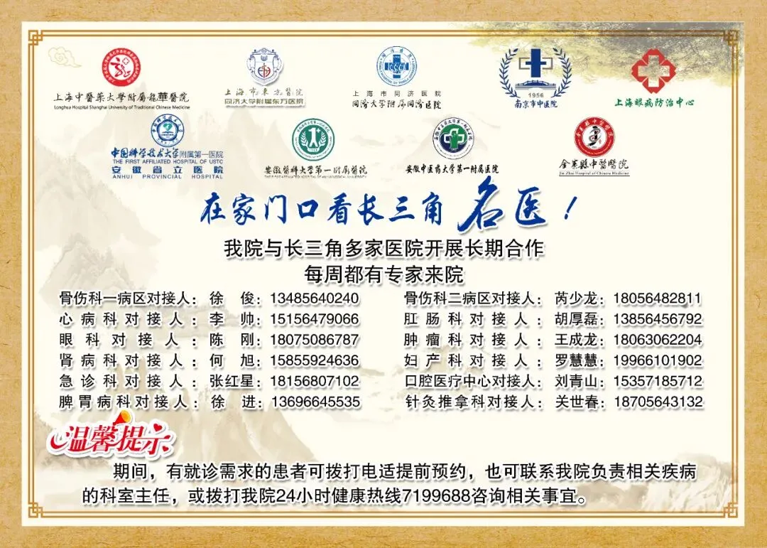 凡有腹痛,便秘,腹泻,大便不规律、变形、不成型,便血,以及肛周瘙痒、肿痛、流脓、肛门肿物,便不尽感,均可至金寨县中医医院肛肠科就诊。南京市中医院肛肠中心主任中医师,南京市名中医,副教授。南京市第三批名老中医学术经验继承学习,师从丁泽民老中医。国家级第四批名老中医学术经验继承学习,师从丁义江教授。现任世界中医药学会盆底医学专业委员会理事,中国中医药研究促进会肛肠分会理事,亳州市中医药学会肛肠分会常务理事。从事本专业20余年,擅长肛肠常见病、多发病的诊断治疗,在环状混合痔、高位复杂性肛瘘、结直肠肿瘤等疑难、复杂病人的诊治方面有丰富的经验,尤擅长电子肠镜对肛肠疾病的诊断及早期肠癌的内镜下治疗。以上是南京市中医院专家来我院坐诊信息及专家简介,请持续关注金寨县中医医院公众号及订阅号,了解更多医疗资讯。请有需要的群众收藏转发,来院就诊!