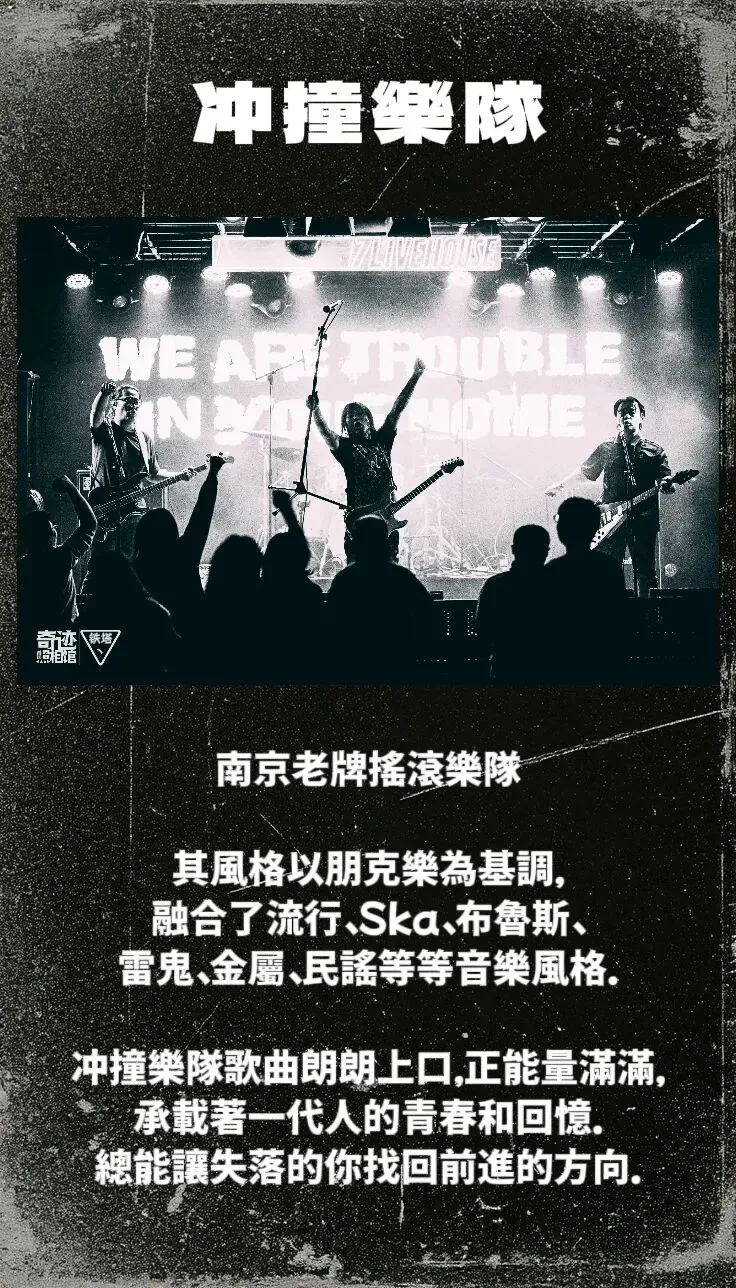 抖音/小红书搜索“冲撞乐队”