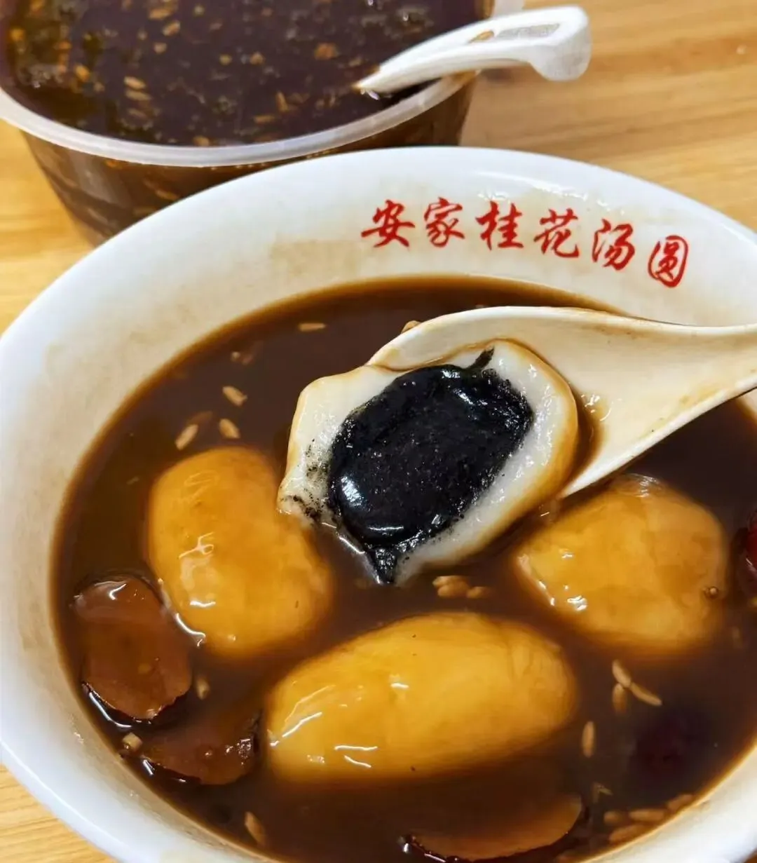 特色解析: 安家汤圆的灵魂在于那一锅热气腾腾的汤底。用红枣、酒酿、桂花和冰糖熬制的汤底,浓稠香甜,散发着迷人的桂花香和淡淡的酒酿风味 。汤圆本身是个头硕大的手工糯米团子,外皮软糯黏稠,内馅是细腻油润的黑芝麻或绵密的红豆沙。咬破软糯的外皮后,浓郁的馅料瞬间涌出,三重甜香在口腔里融合,秋冬季节来一碗,暖意直达心底 。
