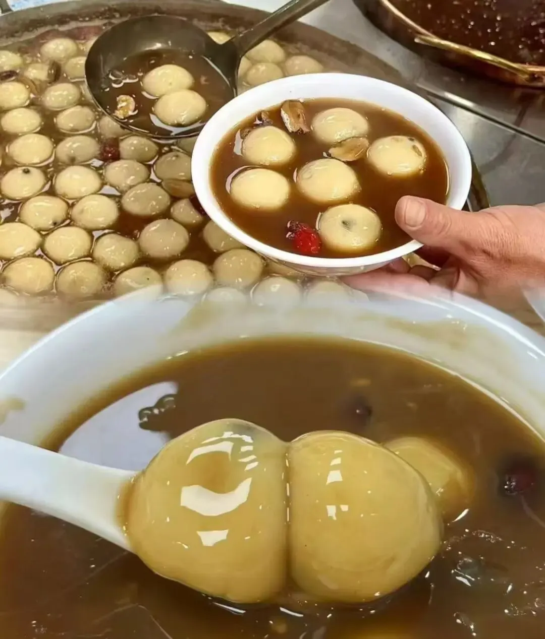 特色解析: “四喜”寓意福禄寿禧。一碗里面包含了四种不同口味的元宵,通常有芝麻、豆沙、花生以及一种特别口味(如纯糯米小圆子)。相比于其他家专注于某一种馅料的极致,王建发的四喜元宵更像是一场味蕾的盲盒体验,你可以在一碗中尝遍多种风味。汤底也是传统的桂花赤豆底,吃的就是一个好彩头和丰富的体验感 。