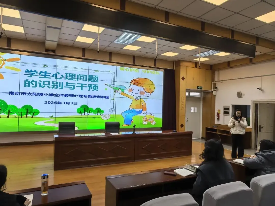 为切实提升教师对学生心理问题的识别与干预能力,筑牢学生心理健康防线,2026年3月3日上午,南京市太阳城小学组织全体教师开展“学生心理问题的识别与干预”专题心理培训,以专业力量为学生的心灵成长保驾护航。