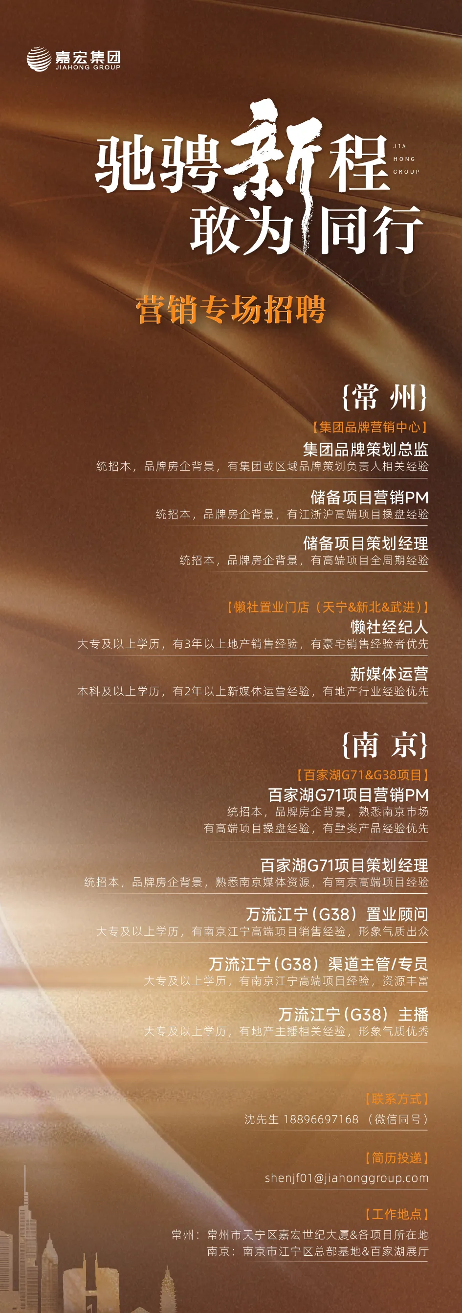 >【嘉宏集团】南京/常州营销专场招聘