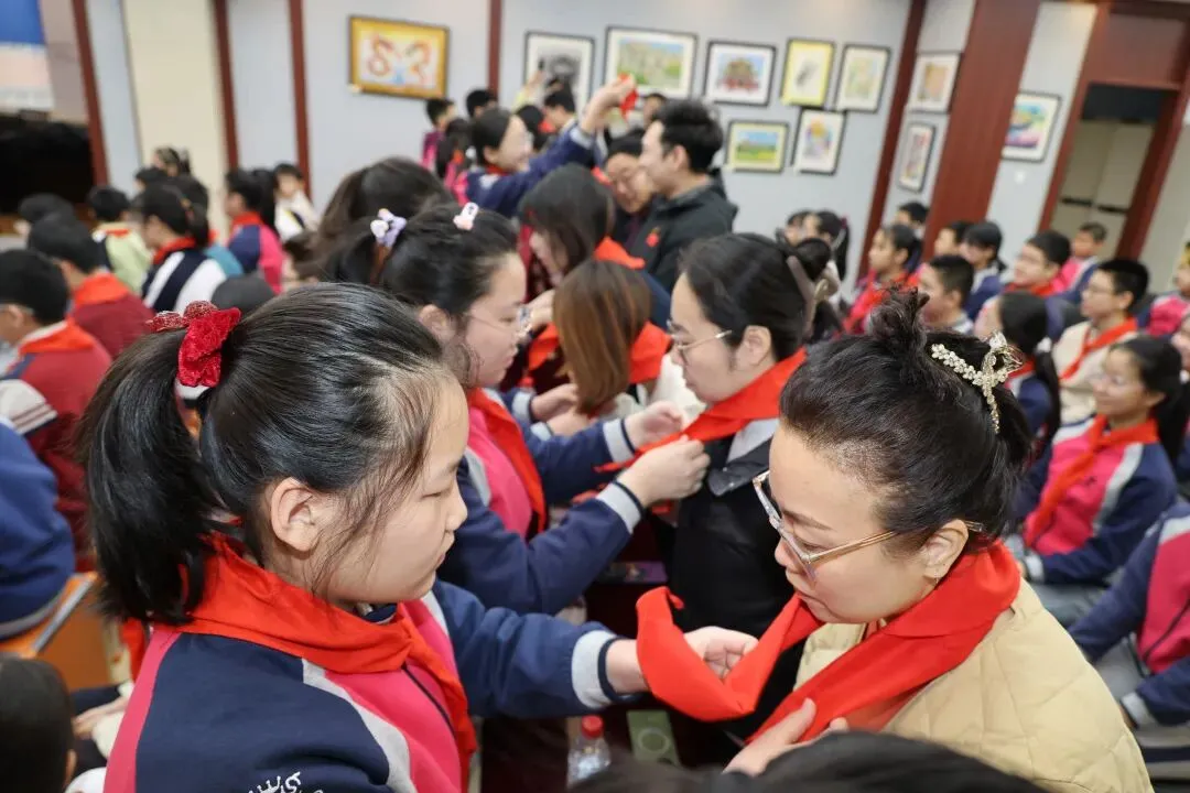 活动伊始,少先队员代表为莅临现场的嘉宾、校领导及家长代表敬献红领巾,一抹抹鲜艳的红色,是少年对英雄先辈最真挚的敬意,是对红色精神最赤诚的传承。
