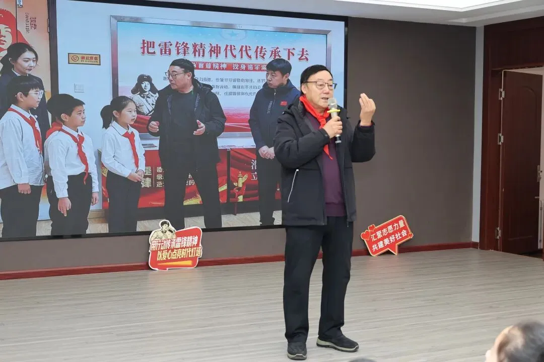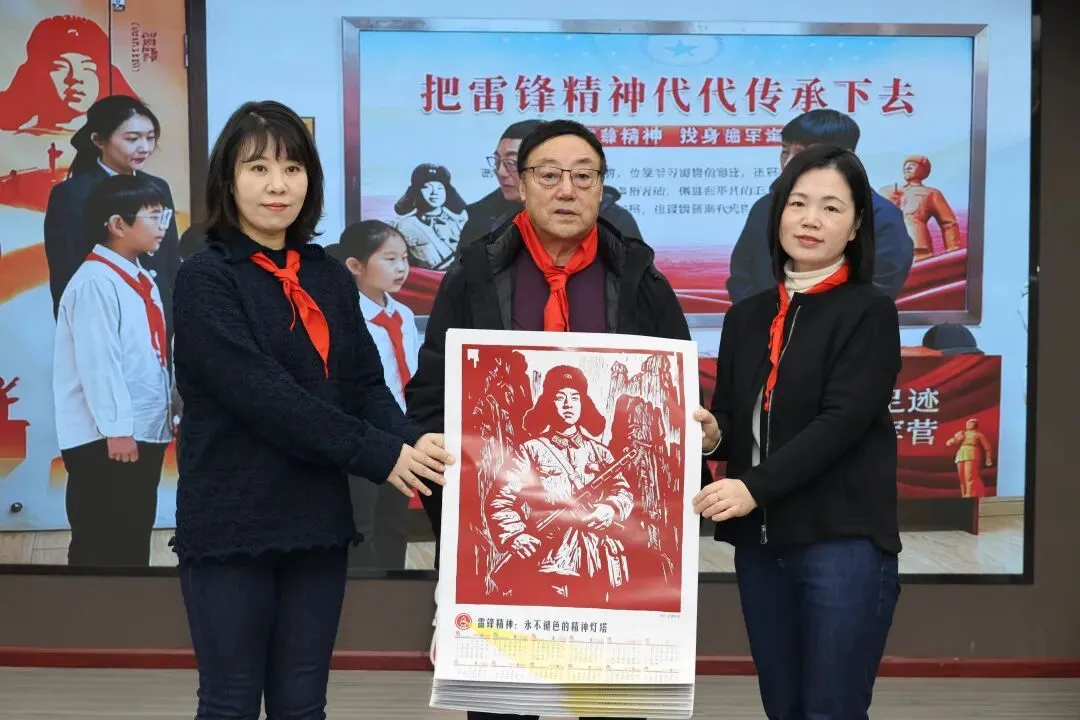 为让雷锋精神常驻校园、浸润童心,于兆玉大校现场向学校捐赠15幅2026年雷锋木刻年历画,以红色文创传递精神力量,让雷锋形象与崇高品格深深镌刻在师生心间。