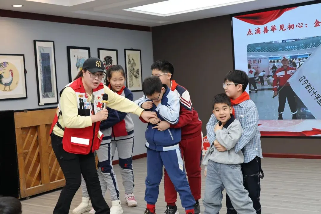 为提升同学们的安全防护与应急自救能力,本次活动特别增设应急救护科普课堂。沈阳宋世辉公益发展中心红十字志愿服务队队长、沈阳市先进应急救护师资苗妍现场授课,围绕气道异物梗阻应急处置,系统讲解并示范海姆立克急救法。