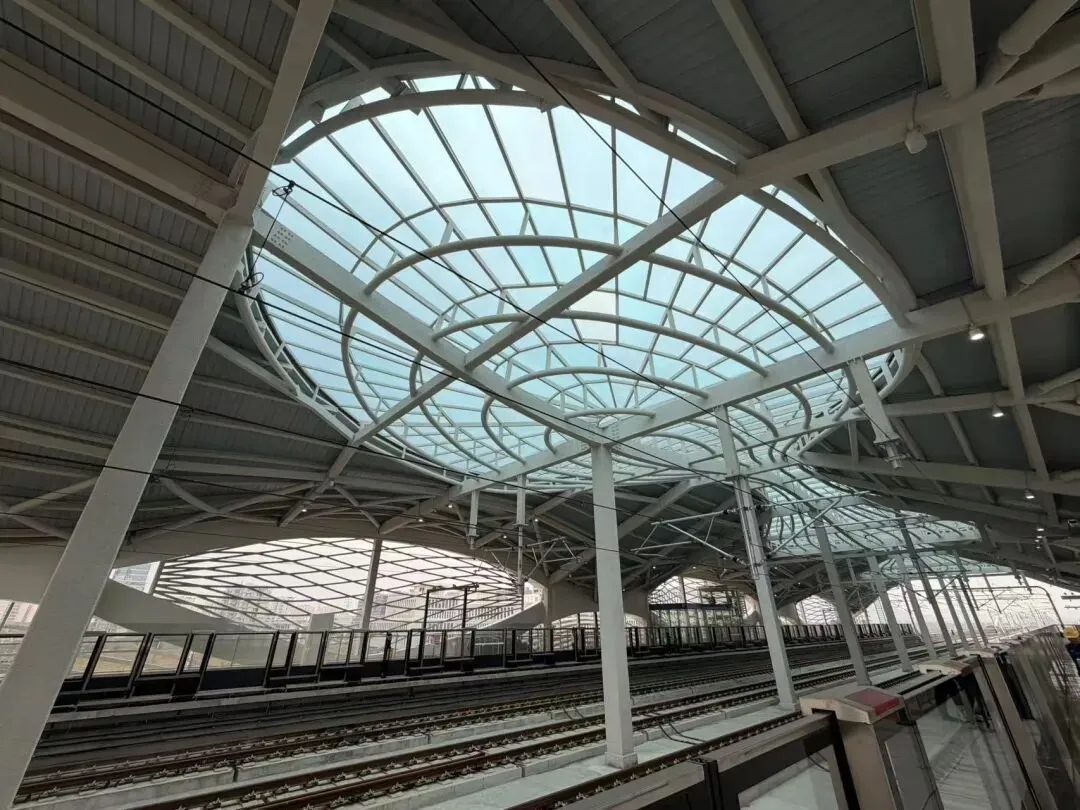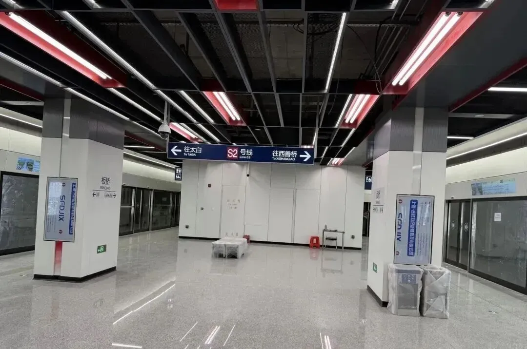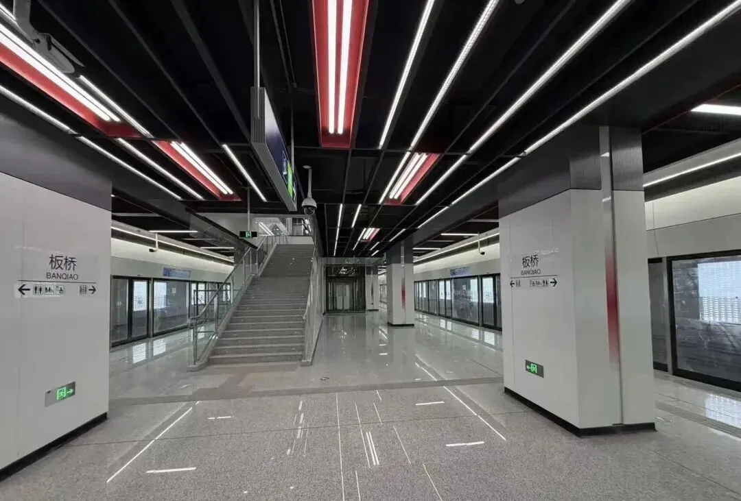 宁马城际板桥站内部实景曝光,简约线条勾勒空间质感,红韵灯带呼应线路的红色标志