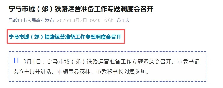 第二,与此同时,马鞍山市高规格召开宁马市域(郊)铁路运营准备工作专题调度会,