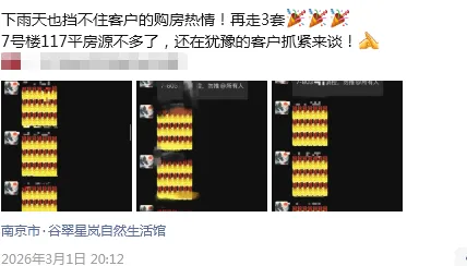 江宁东山的中建东山樾府,三月首日到访超200组,据说狂卖15套,销售从早忙到半夜。
