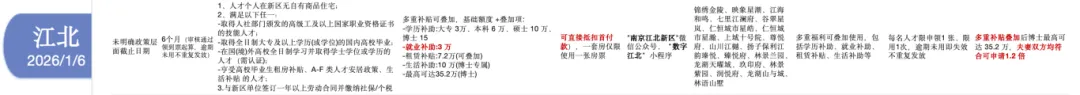江北我认为是这波政策翻涌里面态度最明确、最诚恳的一个区,紧跟南京市政策2.0,第一个发布政策,并且毫不扭捏直接给出了一步到位的政策:学历补助 + 就业补助 + 各类相关补贴叠加、博士最高可享35.2万。