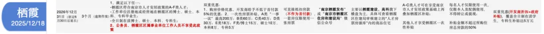 总体上,雨花人才房源楼盘库基本上也就是所有雨花的在售项目,就知道雨花Z府真的出钱了,组织的很好,没有人是傻子,Z府自愿当了这个傻子,那么大家就都加入了,齐心协力搞好金三银四以及2026。。。扒时间线才发现,栖霞的人才新政发布日期竟然是12月18日,而南京的整体基础新政是新年后,然后我又去仔细扒了扒,发现其是作为南京人才政策的试点在2025年12月率先启动的。根据2026年2月24日公布的数据显示,栖霞区已累计收到申请近1000人次,审核通过并发放房票超200张,票面总额2000万+。所以,栖霞区又迅速推出了人才房票政策2.0——房源扩容、时效延长。仙林华曦府、兰亭和颂、翡翠天悦花园4个区位优、价格适中、市场认可度高的在售楼盘第二批房源入库。栖霞区人才房票政策有效期由原定2026年6月30日,延长至2026年12月31日。