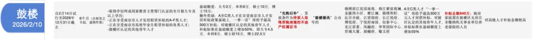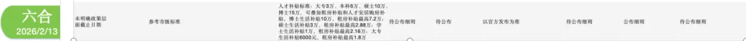 一次性房票补贴:A-C类人才,A类“一事一议”最高200万元、B类60万元、C类40万元;D-E类人才:D类30万元,E类18万元;F类及其他学历人才:博士类15万元、硕士类10万元、本科类8万元、专科类5万元。