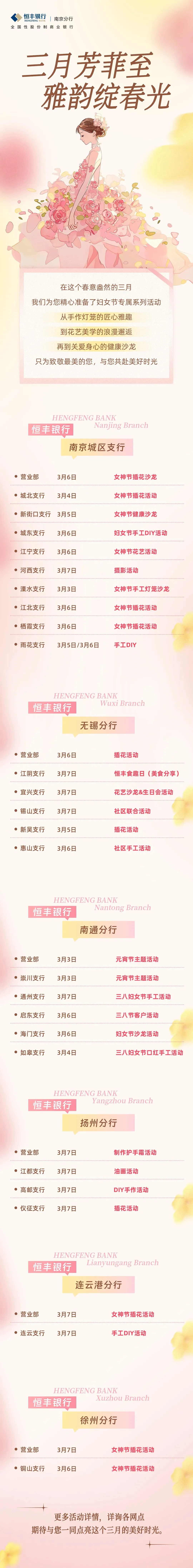 >月恒·岁享丨恒丰银行南京分行本周精彩活动
