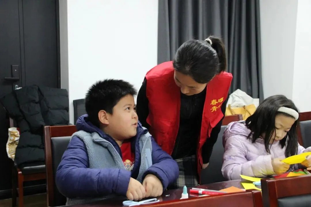志愿者教授儿童剪纸手工