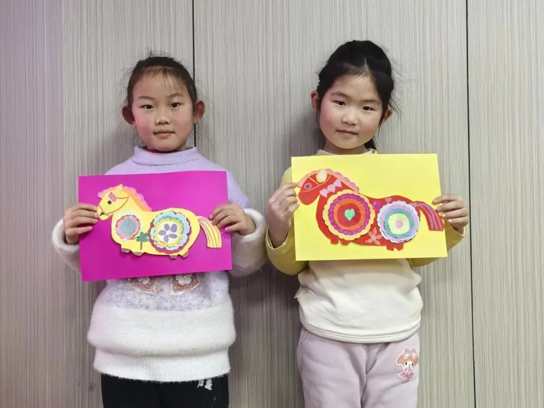 成品展示环节精彩纷呈,形态各异的小马、寓意美好的福字、灵动可爱的新春图案,每一件作品都充满童真与创意,承载着孩子们对马年新春的美好期盼。