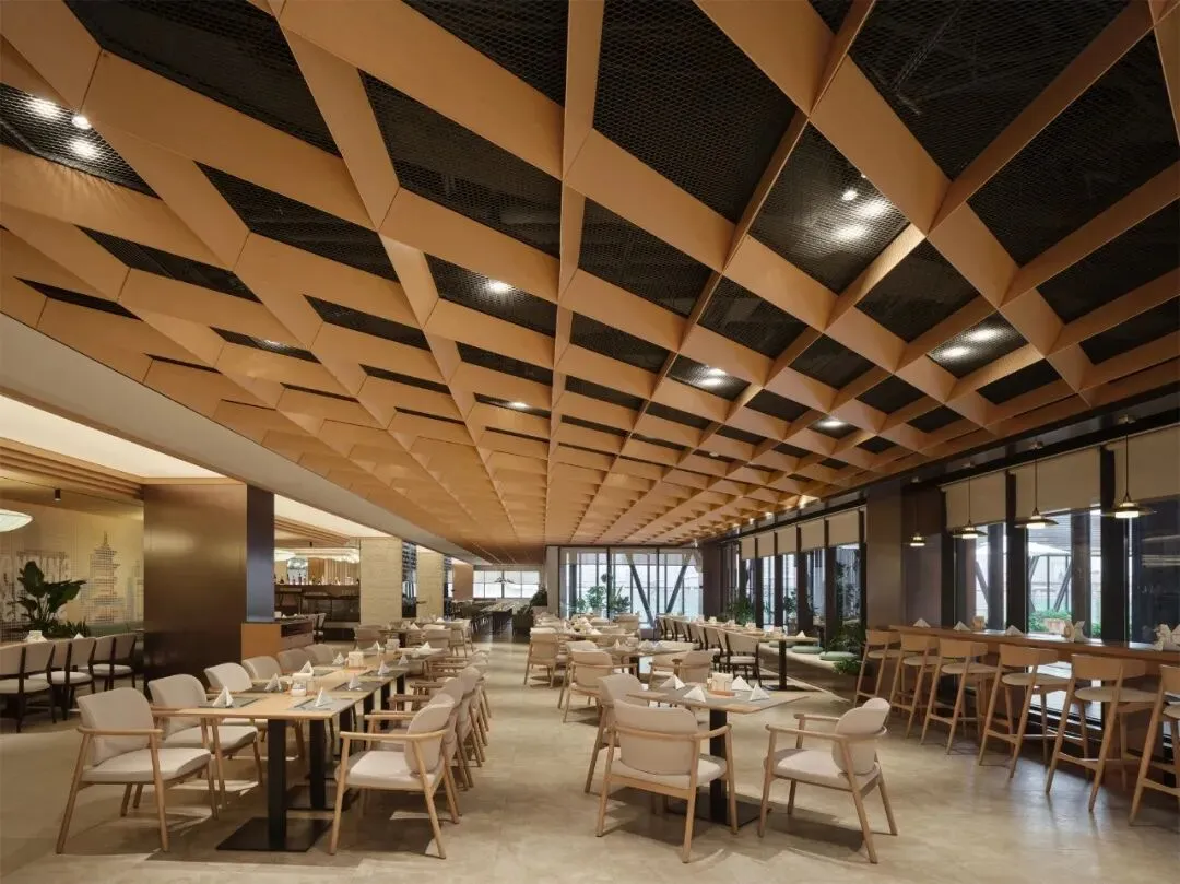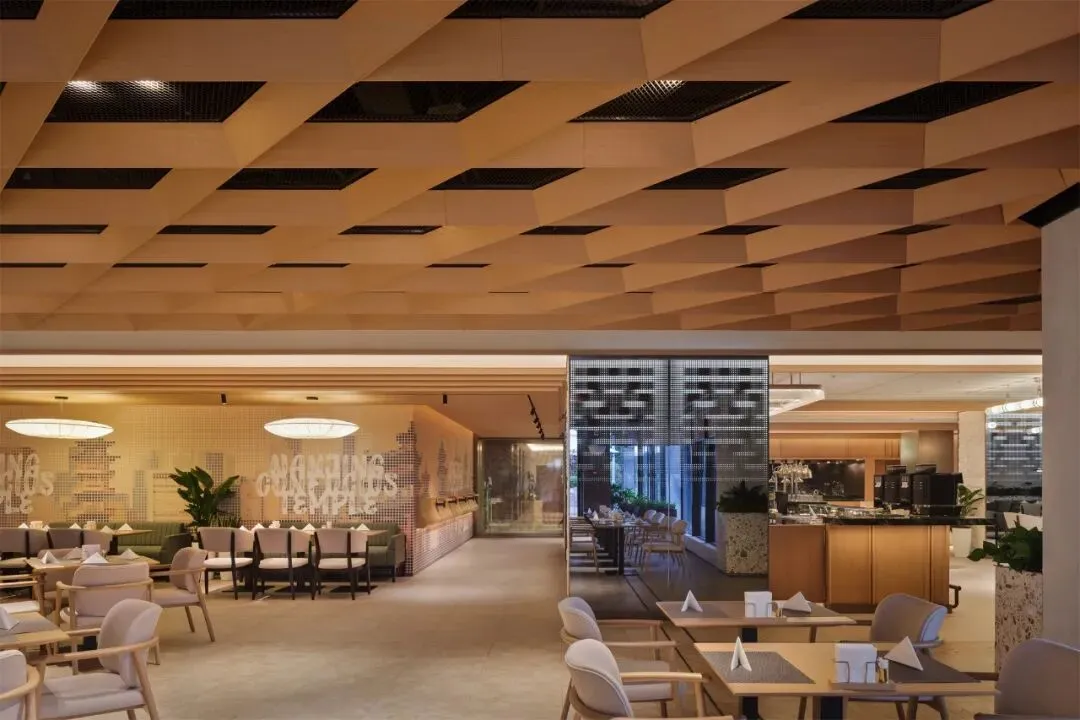 Located on the top floor of Holiday Inn Nanjing Aqua City, the "FEAST" restaurant extends the project's overarching "Natural Ecology" design philosophy. Through a strategic approach of "Multi-timeslot, Diverse Clientele, and All-scenario," it constructs an All-Day Dining space that seamlessly integrates multifaceted lifestyles.