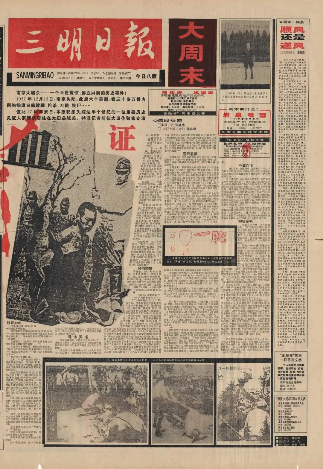 在1994年12月9日的《三明日报》头版刊发