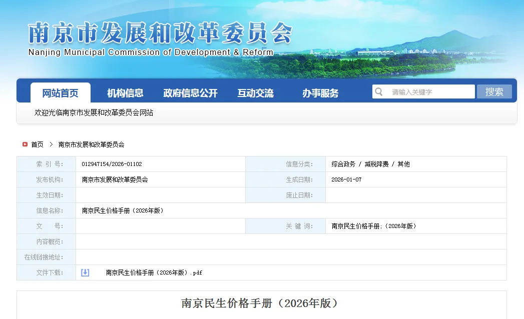 《南京民生价格手册(2026版)》