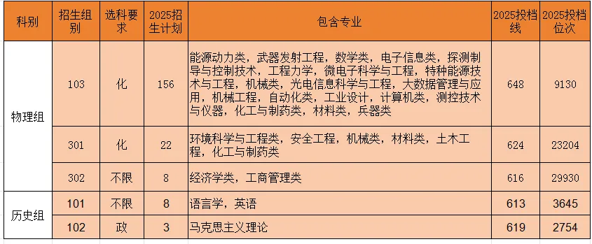 安全科学与工程 C+、兵器科学与技术 A+、材料科学与工程 B、电气工程 C、电子科学与技术 B、动力工程及工程热物理 C+、工商管理 C+、管理科学与工程 B、光学工程 B+、航空宇航科学与技术 C、化学 C-、化学工程与技术 A-、环境科学与工程 B、机械工程 B+、计算机科学与技术 B+、控制科学与工程 B+、力学 B、马克思主义理论 B-、软件工程 B、设计学 C+、数学 B-、图书情报与档案管理 C+、土木工程 C-、外国语言文学 C-、物理学 C-、信息与通信工程 B、仪器科学与技术 B-