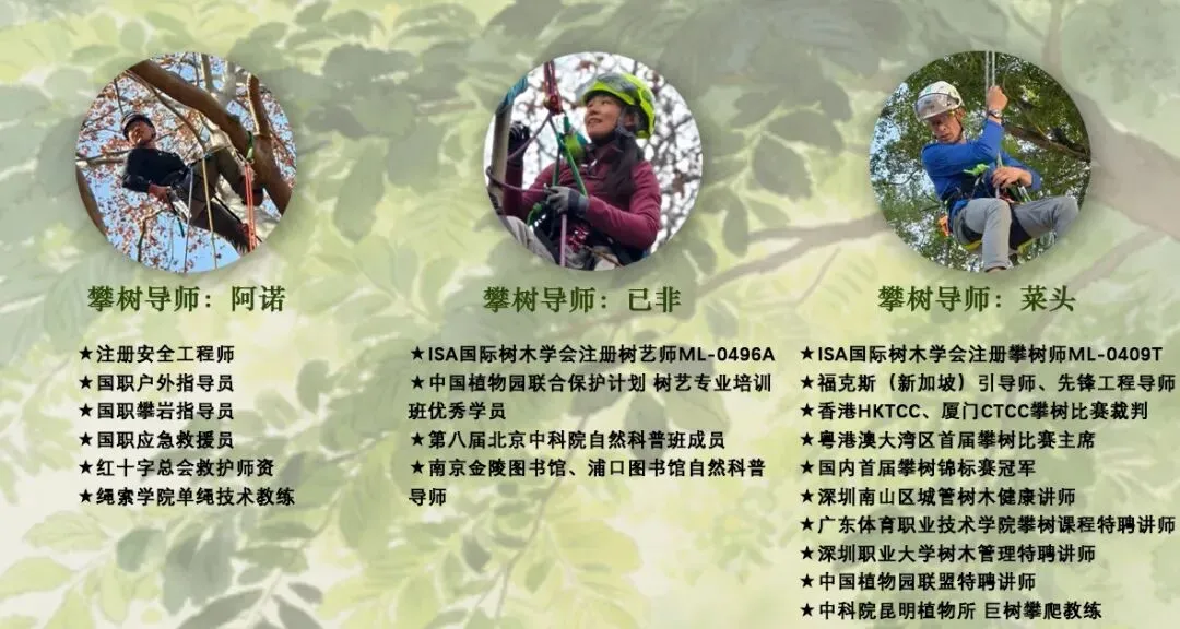 主教练团队由持有国际树木学会(ISA)认证树艺师、攀树师与获得认证的户外教练组成