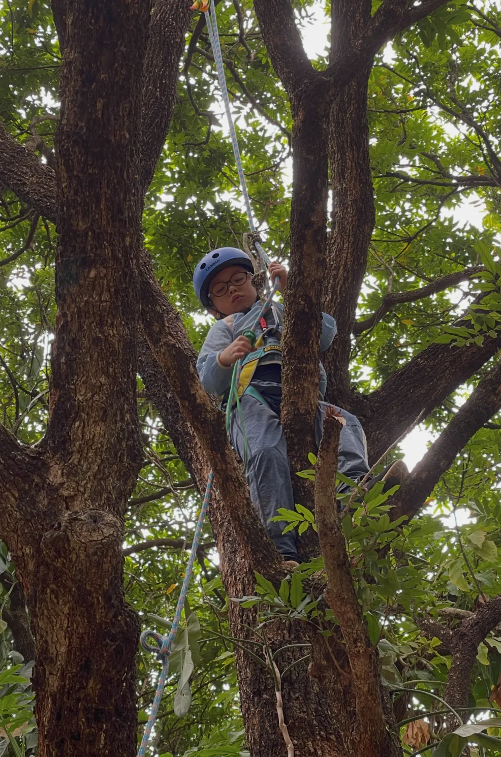 对于大众体验而言,攀树的最低年龄为5-6岁,专业学习通常需要15岁以上。攀树不但可以锻炼青少年的力量、平衡、协调与核心体能,培养勇气、专注力与安全、规则意识,更是一个亲近自然、了解自然的好机会,弥补孩子户外体验的不足。