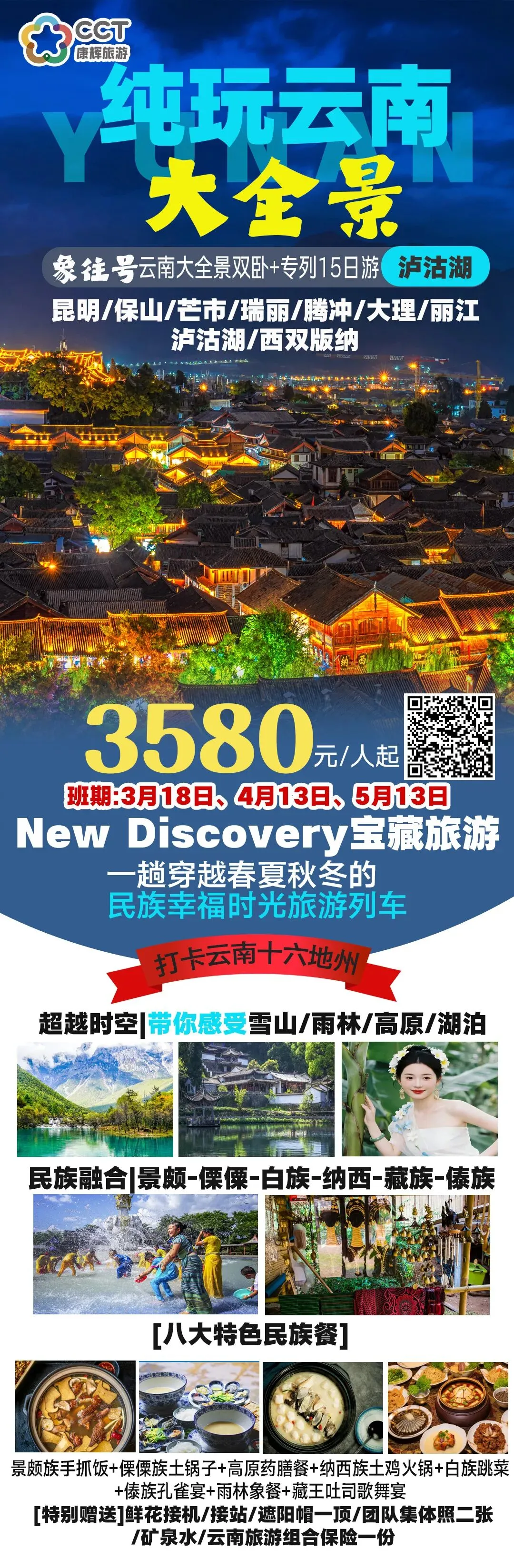 【云南◆全景】南京出发云南,昆明/保山/芒市/瑞丽/腾冲/大理/丽江/泸沽湖/西双版纳全景双卧15日游,一趟穿越春夏秋冬的民族幸福时光列车