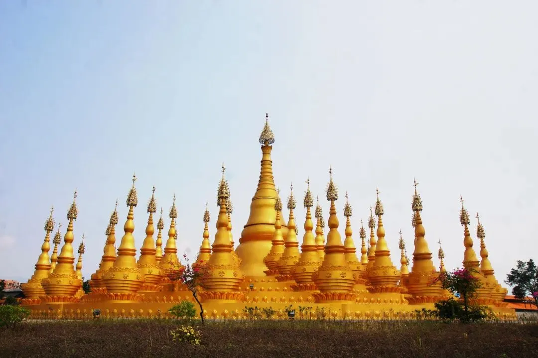 抵达芒市后前往【勐焕大金塔】勐焕大金塔座落在芒市东南部海拔一千零七十九点六米的雷崖让山顶。自古以来是人们公认的佛教圣地之一。亚洲第一空心佛塔。