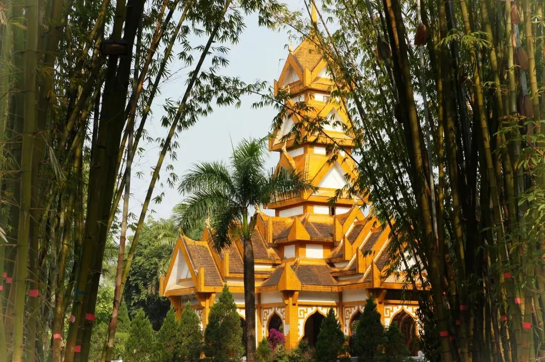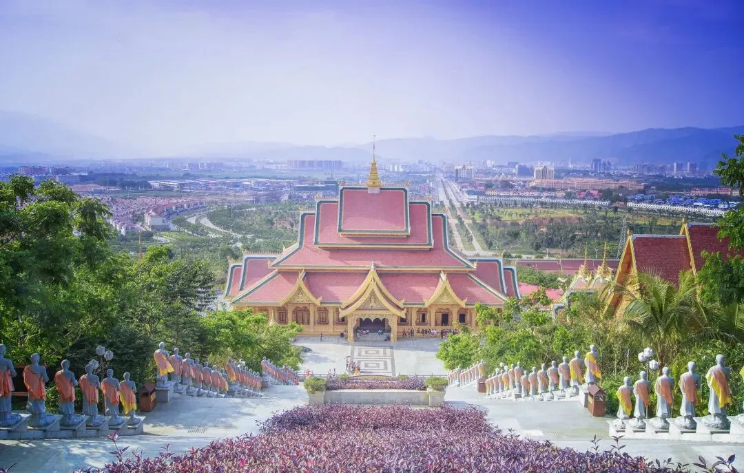 之后游览昔日的傣族王朝皇家寺院后【勐泐大佛寺】, 今日中国最大的南 传佛寺—与佛结缘、和美一生。依山而建, 高差达千米, 呈坐佛形, 为国内外所独有。俯瞰整个西双版纳州府, 旖旎的 热带风光尽收眼 底, 同时还可观赏: 孔雀放飞盛景、参加泼水狂欢活动。