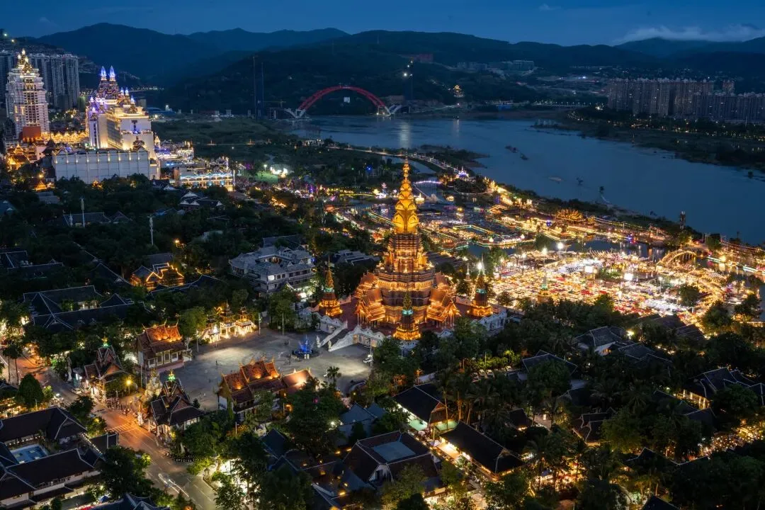 晚餐前往游览最美夜市-【星光夜市】 (游览时间约 2 小时), 星光夜市是一个让 人来了就不想离开的地方, 每个角落都充满了“激情”和“诱惑”, 每一处都显露出了告庄西双景繁华和人气的旺盛。这 里更是湄公河畔最美丽的夜市, 也是大金三角最具有规模、最具有特色的夜市。