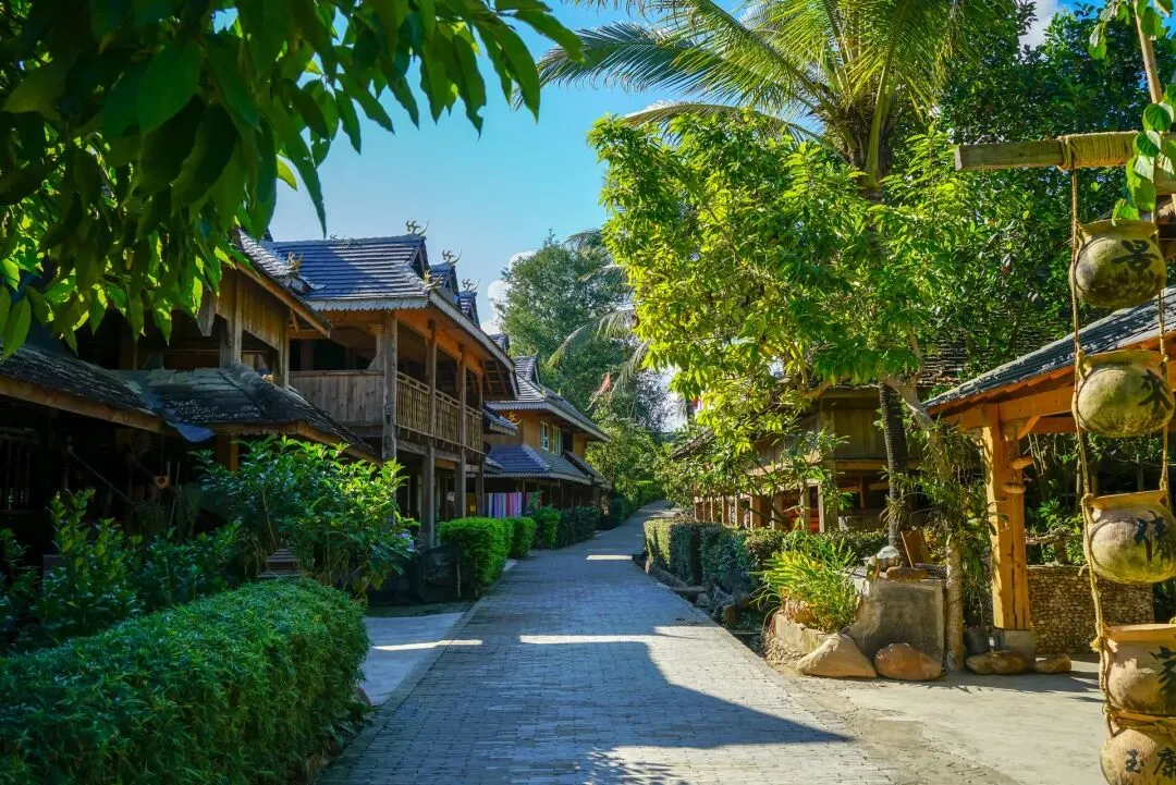 中餐后前往游览【一寨两国】距离瑞丽市区约10余公里, 位于有名的中缅边境71号界碑旁, 是典型的“一个寨子 两个国家 ”地理奇观。国境线将一个傣族村寨一分为二, 中方一侧的称为银井, 缅方一侧的称为芒秀。寨中的国境线以竹篱、村道、水沟、土埂为界, 因此, 中国的瓜藤爬到缅甸 的竹篱上去结瓜, 缅甸的母鸡跑到中国居民家里生蛋便成了常有的事。边民们每月数十次 地穿越国境线而浑 然不觉。寨子里的老百姓语言相通、习俗相同。