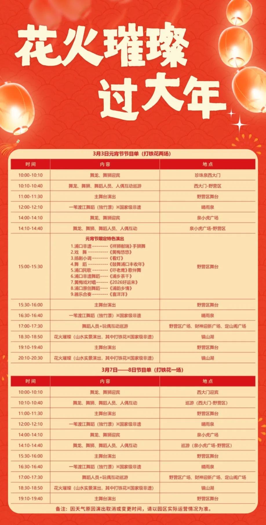 正月十五月儿圆,灯火万家共此时。2026年的元宵佳节,北岸早已备好满档惊喜,从早到晚精彩不打烊。正月十五月儿圆,灯火万家共此时。2026年的元宵佳节,北岸早已备好满档惊喜,从早到晚精彩不打烊。地点:桥北商圈(下桥口、弘阳广场、金象城、印象汇四大展区)作为秦淮灯会首次跨江联动的新增分会场,桥北商圈用23组非遗灯彩点亮江北夜空,让千年灯影与都市繁华交相辉映。明天(3月3日)元宵节珍珠泉风景区可预约免费入园,当天南京最大的山水实景打铁花、浦口非遗手狮舞、民歌将轮番登场。白天有舞龙巡游领路,非遗市集逛吃,猜灯谜赢好礼,还有“一苇渡江”的名场面。夜幕降临,南京最大的山水实景打铁花将在镜山湖畔上演。12组风火轮旋转不息,24炉铁花次第绽放,持续20分钟的璀璨星雨,与水中的倒影交相辉映。13组马年主题灯组交织,穿越九曲流光灯阵,在流光溢彩的灯影世界里赏灯观景。水幕光影秀搭配国风电音,雾森系统模拟温泉流动,解锁科技与自然共生的光影盛宴。100件入围佳作与18件名家作品,涵盖国画、油画、版画等多元门类。以写生形式定格江北新区的山水之美、发展之韵,将自然风光与城市风貌融入笔墨。聚焦新区发展与新春民俗,智能触屏解锁作品故事,打卡赢“最美照片”。千灯许愿、吃汤圆、猜灯谜、巡游赏灯……共赴元宵之乐。大厂街道把“非遗鱼灯”“国风大赏”“烟火市集”全搬到了家门口!更有新春就业专场惊喜联动,边逛边看机会。集市、互动、观演三重体验,优质文化资源邂逅商业活力,解锁质感新春。山谷间的沉浸式游园,电子孔明灯祈福,民俗体验与文创消费碰撞出别样火花。亲子灯笼 DIY、趣味投壶、套圈游戏,搭配免费汤圆品鉴,解锁阖家欢乐时光。民俗巡游、猜灯谜、主题市集,打卡发圈赢消费券,边玩边省。灵动的小马灯、气势恢宏的长芦龙灯,将带您近距离感受非遗的独特魅力,领略长芦本土深厚的文化底蕴。学习俗、猜灯谜、玩互动、做亲子花灯,共品现煮元宵。手工老师现场教学黏土创意 DIY,作品可带走,定格专属节日记忆。跳手势舞、拓非遗纹样、玩 AI 民俗,通关就能拿 “双料小达人” 奖状。从揉粉开始,一点点亲手制作小圆子。大家一起做汤圆、煮汤圆、吃汤圆。