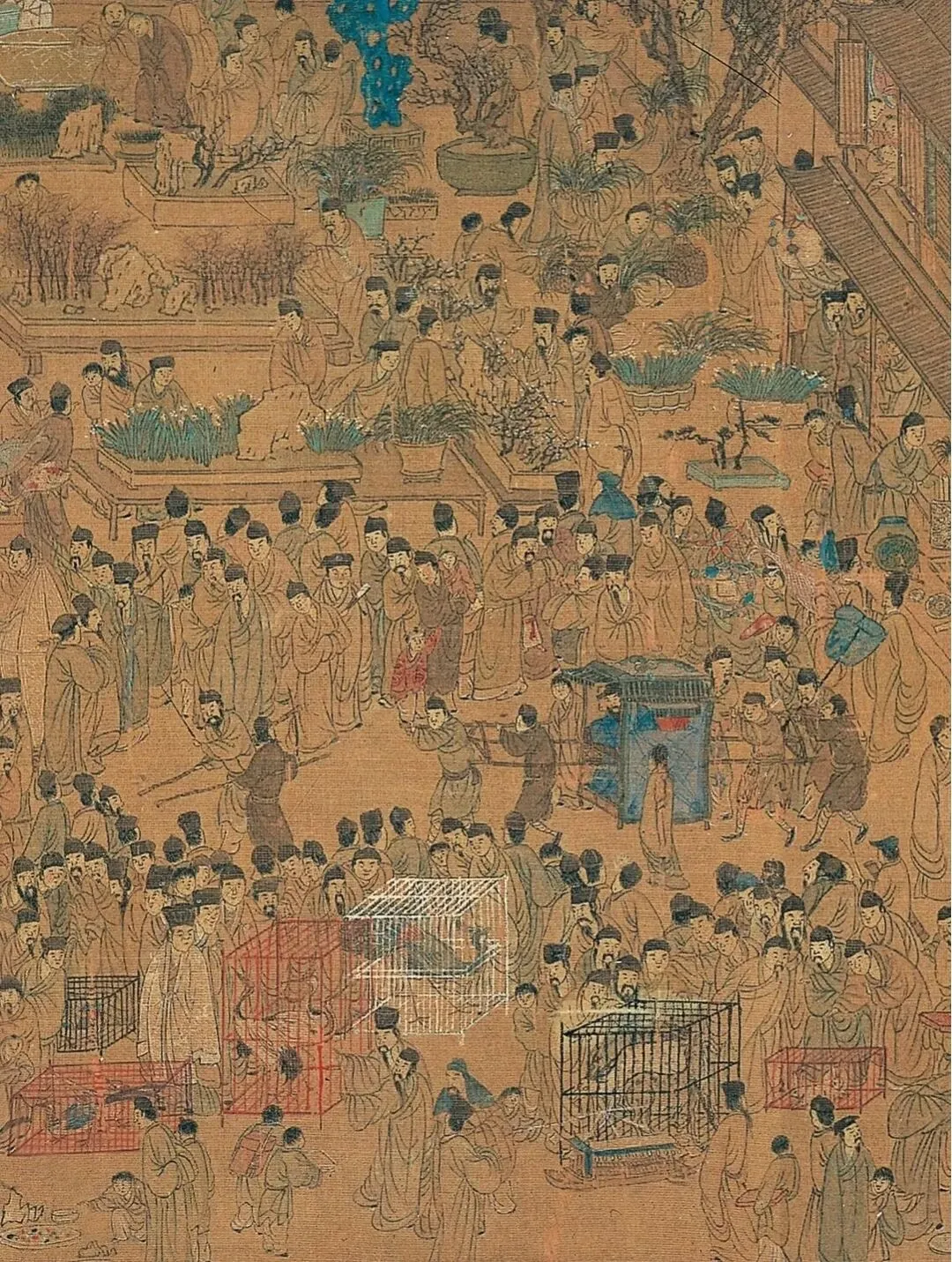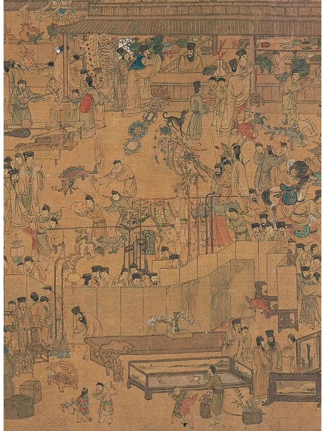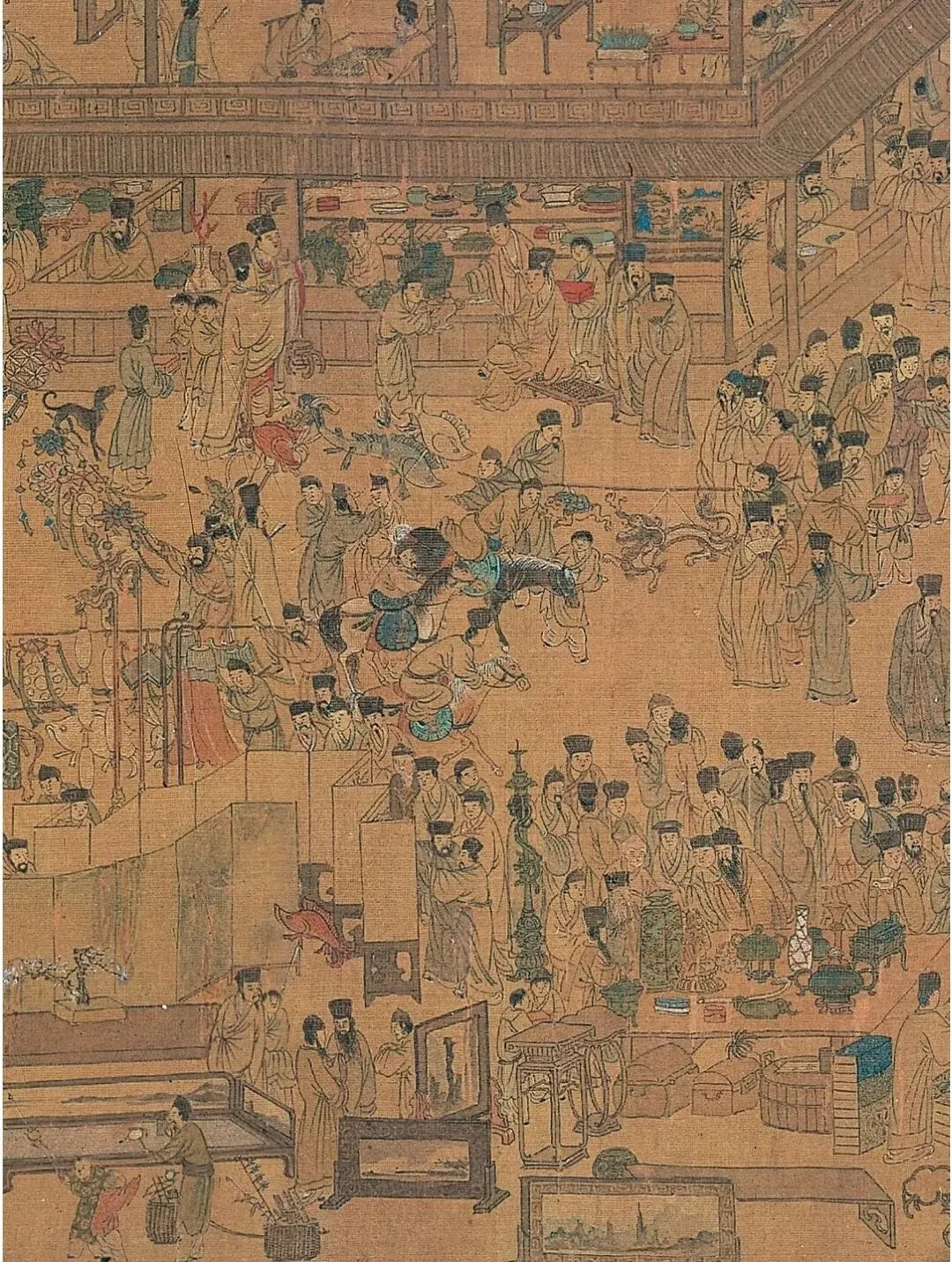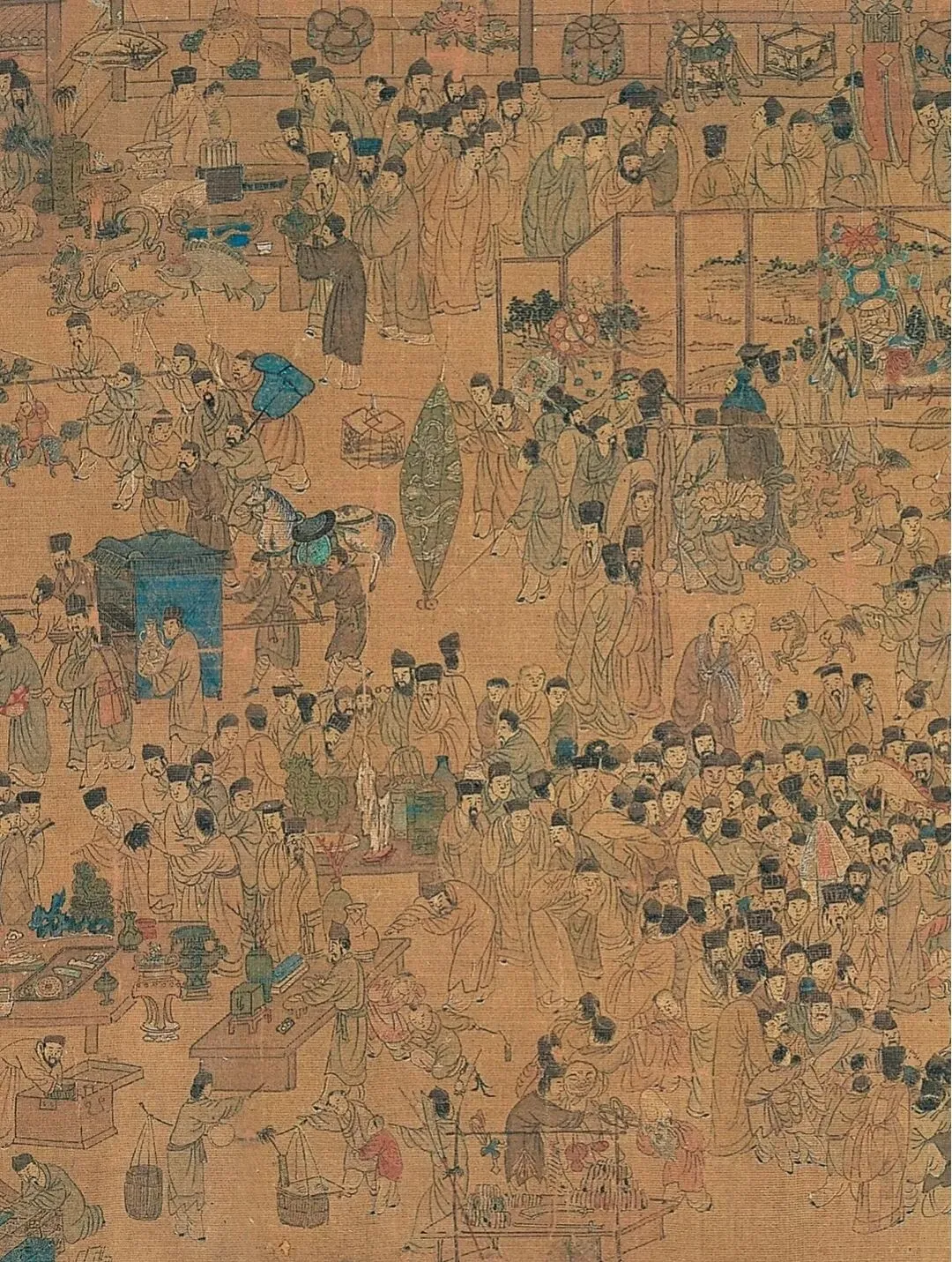 画中沿街商铺鳞次栉比,画中可以窥见明代南京商贸集市盛况场景。