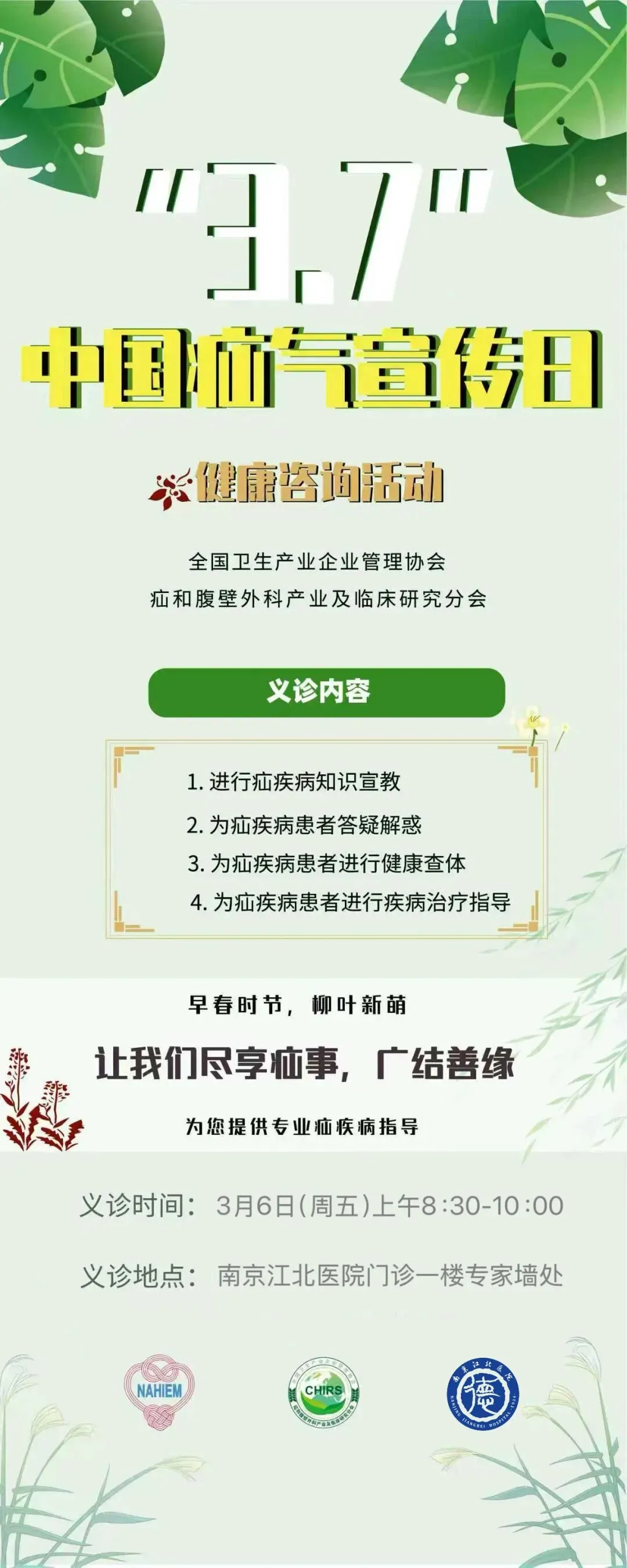 为迎接3月7日“中国疝病宣传日”,进一步普及疝气规范化诊疗知识,提升市民对疝气疾病的认知水平,助力广大市民实现疝气早筛查、早诊断、早治疗,南京江北医院特精心筹备并开展疝气专题公益义诊活动,以公益之力,护百姓腹壁安康。