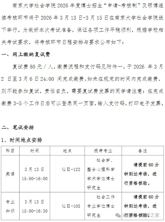 >南京大学社会学院2026年度博士招生“申请-考核制”及硕博连读考核环节日程安排与要求