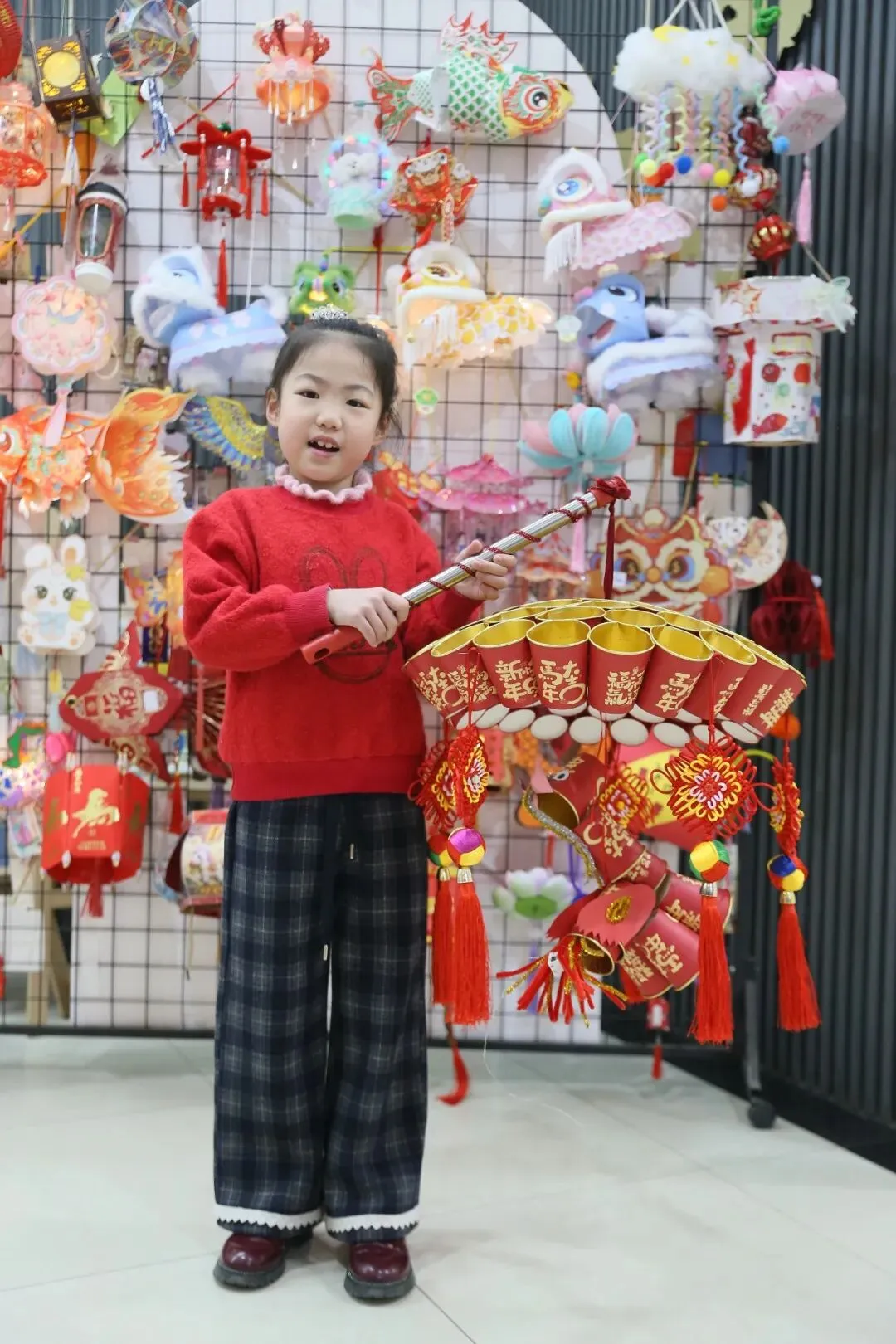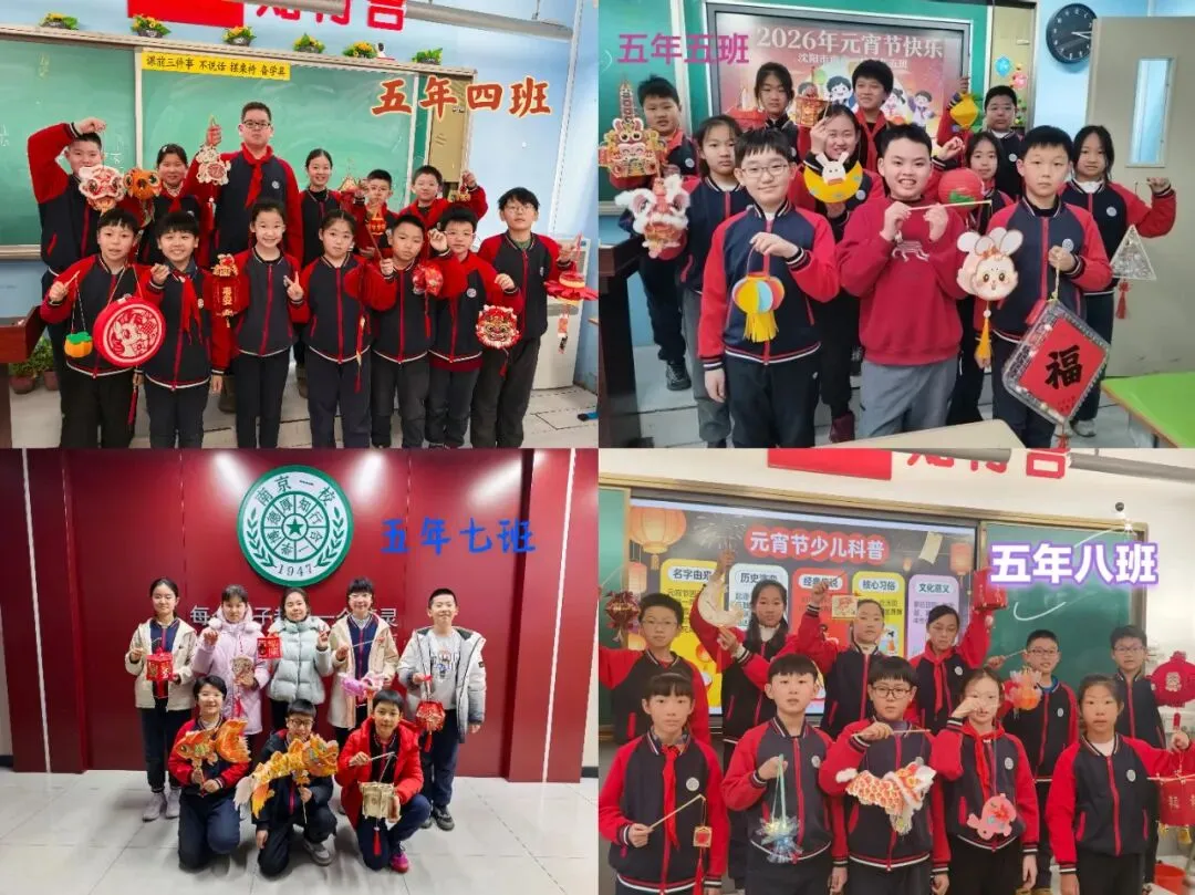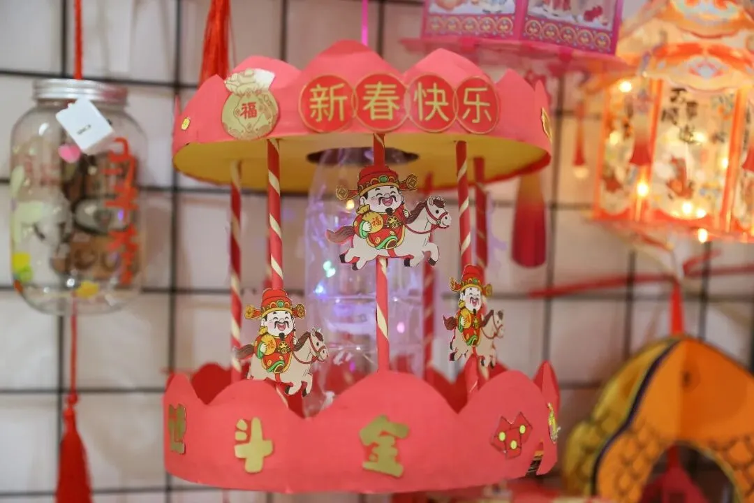这些彩灯均由学生纯手工制作而成,从材料选择到造型设计,处处彰显着“环保创意”的巧思。这些彩灯造型各异、创意十足:废旧的纸盒、塑料瓶、彩纸边角料摇身一变成为醒狮灯、荷花灯、宫灯等各式各样的精美花灯。有的灯面绘着萌趣的小马图案,呼应丙午马年;有的点缀着剪纸窗花,尽显盛京古韵;还有的融入了校园文化元素,承载着对新学期的美好期许……