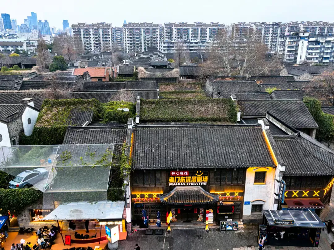越往南走,老门东的烟火气就越浓。城墙下的明清民居黛瓦青砖层层叠叠,飞檐翘角勾勒出老城独有的肌理。