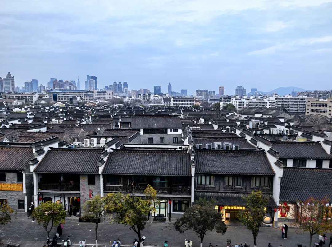 一边是明清的白墙黑瓦,一边是现代的高楼林立,老金陵的慢,和新南京的快,就这样安安稳稳地挨在一起。