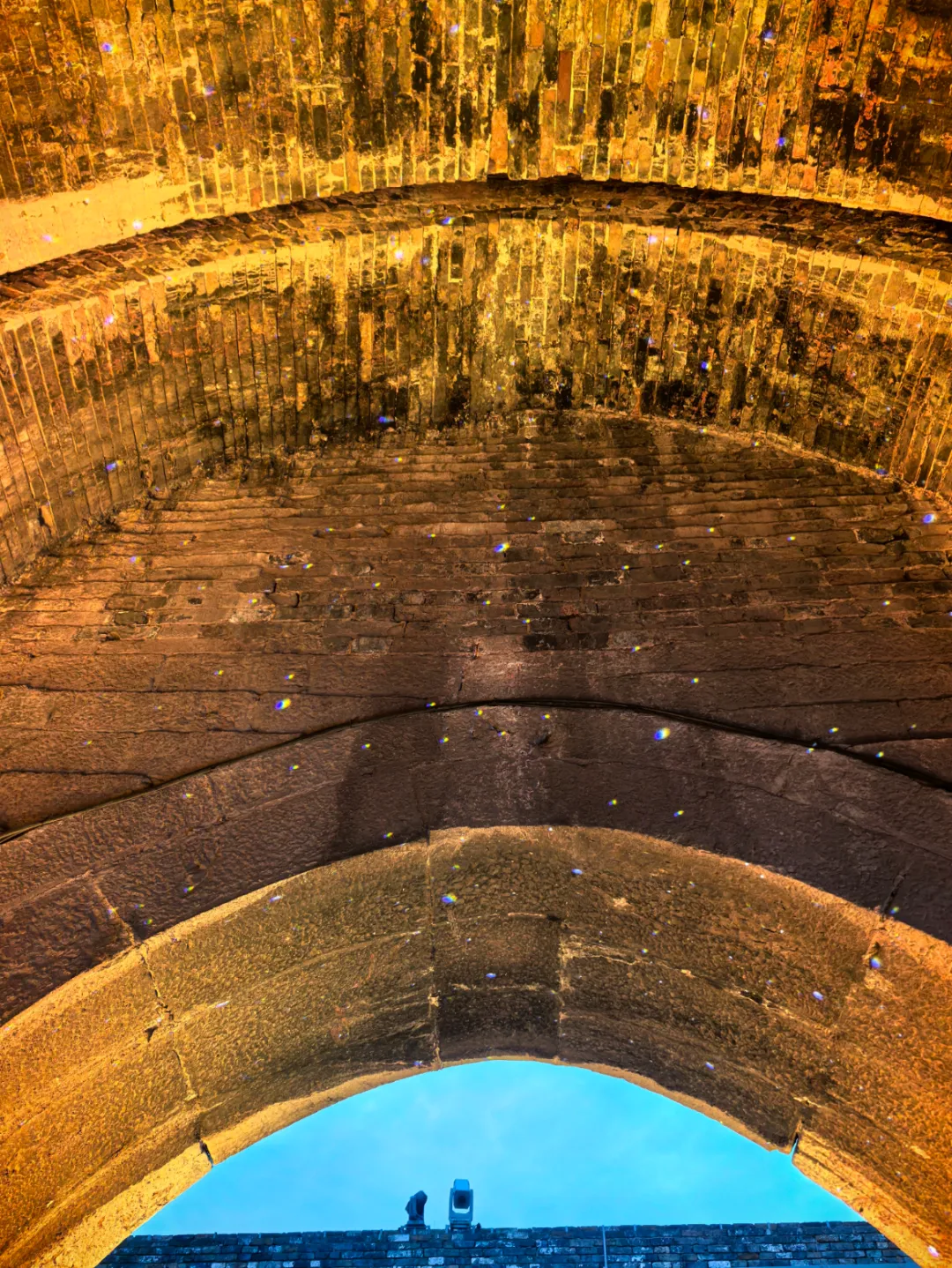 城墙上的元宵灯展在这里铺开到极致,彩灯勾勒出翁城的轮廓,夜色降临时,光影交织,分不清是历史照进了现实,还是我们走进了历史。