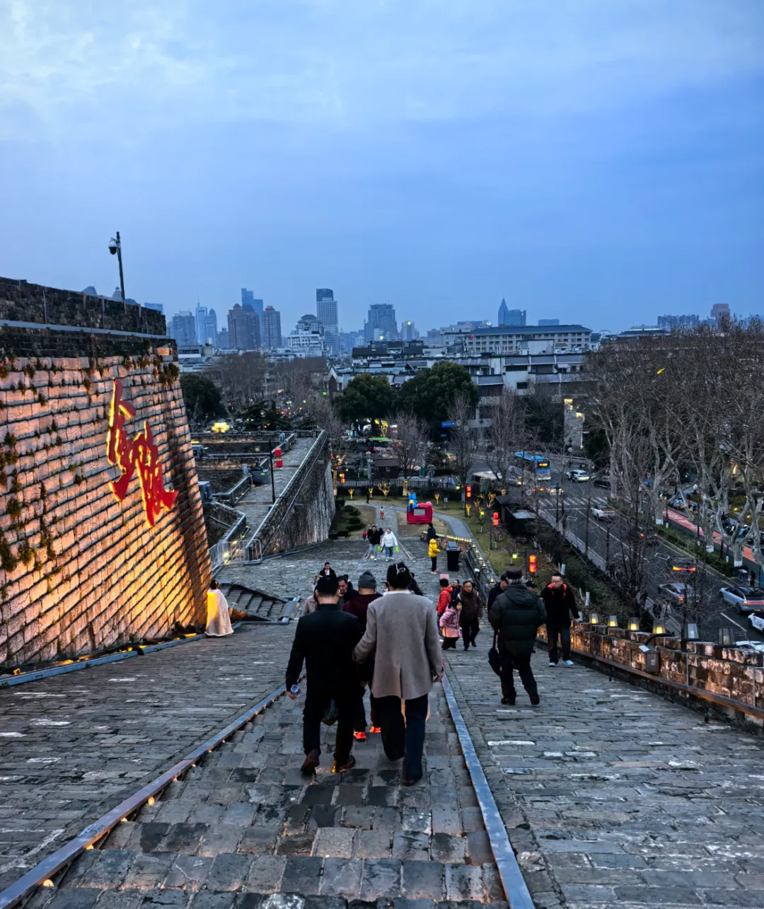 不用赶景点,不用拍打卡照,就沿着城墙慢慢走,看紫金山的影,看秦淮河的水,看老门东的烟火,看高楼里的灯火。