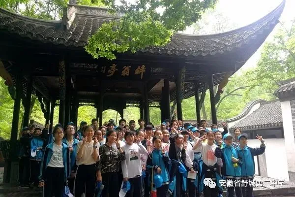 揽胜琅琊,乐同醉翁,激发新情怀。琅琊山研学基地是首批省级研学基地,其风景区自然景色秀美,人文底蕴深厚。中学课文《醉翁亭记》、《滁州西涧》千古流芳。同学们漫步“林壑尤美”的山中,饱览秀美的山色,尽享人文的厚重,从课本的文字走进真实的生活,像是穿越了历史,与“醉翁”同游。他们在“野芳发而幽香,佳木秀而繁阴”的美景中陶醉;在“前者呼,后者应”的喧笑中快乐;在“醉翁之意不在酒”的意趣中徜徉。情郁胸间,自不可禁。同学们聚集醉翁亭前广场,千人共诵《醉翁亭记》:“环滁皆山也。……山水之乐,得之心而寓之酒也。……禽鸟知山林之乐而不知人之乐,人知从太守游而乐,而不知太守之乐其乐也。……太守谓谁?庐陵欧阳修也。”洪亮的诵读声在山林间回荡,与民同乐的情怀在同学们心中激荡……