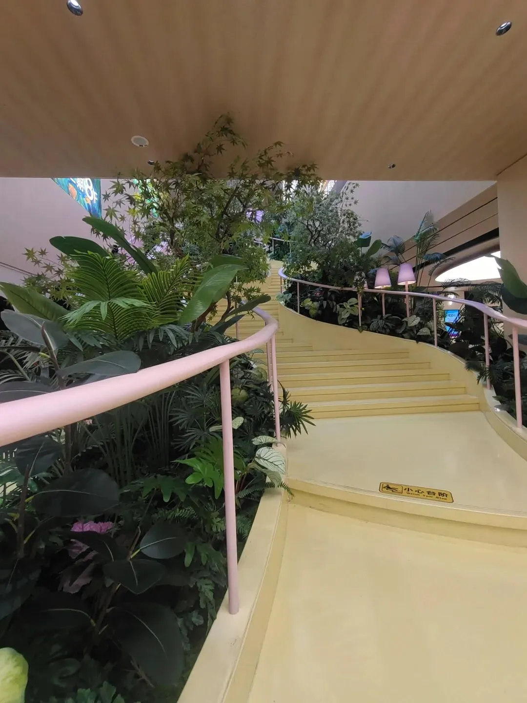 此厅边上设立的“解忧所”也依然保持了德基的不同凡响的风格,在走道处安排了休息座椅。从德基一期的七楼还可通过自动扶梯或楼梯通往二期八楼的德基美术博物馆,这个通道所经之处也布置了大量的绿植。给顾客们的体验较舒适。