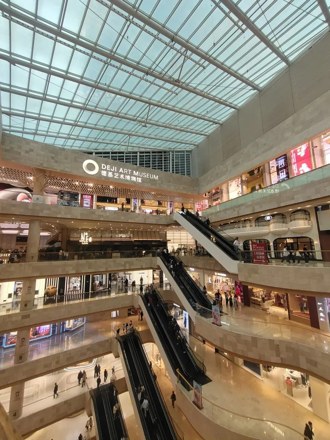 德基广场内的环境非常富丽堂皇,走道宽敞整洁,很多地方会不定期增添一些雕塑等景观装置。去年又将原来一期七楼的电影院区域改造为了带花园的“食光餐厅”,给人耳目一心的感觉。