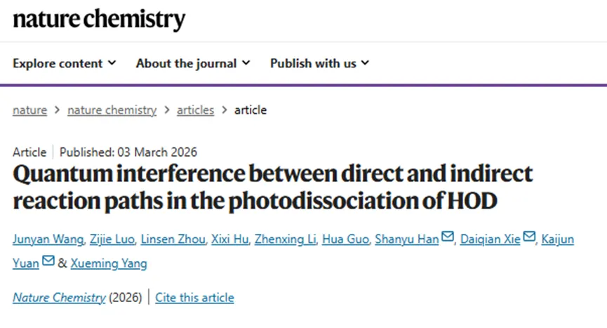 量子粒子的波动性会产生干涉效应,从而影响化学反应的结果;但迄今为止,这类干涉大多被认为来自两条空间上分离的反应路径,类似于光学中的杨氏双缝实验。