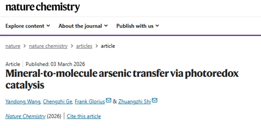 南京大学配位化学国家重点实验室史壮志团队以及德国明斯特大学Frank Glorius团队携手提出一种颠覆性的“矿物到分子”合成策略:利用光氧化还原催化,在可见光照射下,将天然存在的硫化砷矿物(尤其是雌黄 As₂S₃)直接转化为结构多样的有机砷化合物。