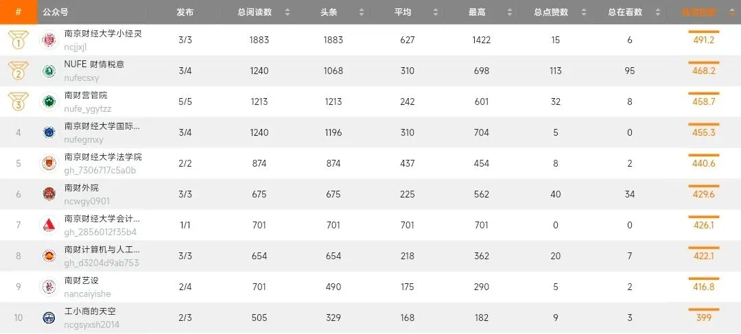 恭喜“南京财经大学小经灵”登顶2025年10月6日至10月12日的各学院学生会微信影响力排行榜!