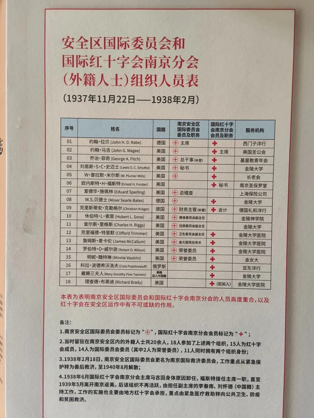 滞留南京的外国人成立了一个民间机构“南京安全区国际委员会”,主席是拉贝。南京沦陷当天,同一批西方人士成立了国际红十字会南京分会,主席是马吉。