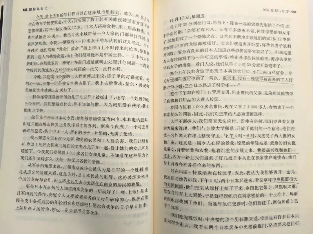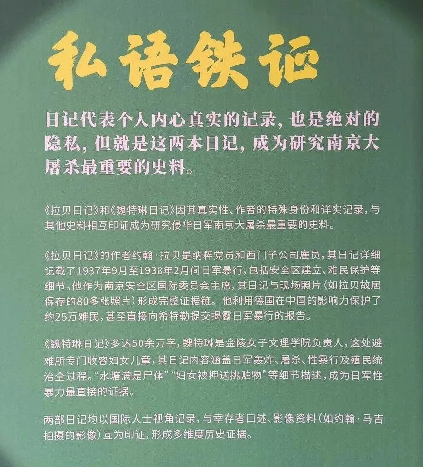 1937至1938,参与救助难民的两个外国人,拉贝与魏特琳分别写有日记,他们的日记代表个人内心真实的记录,成为研究南京大屠杀最重要的史料。