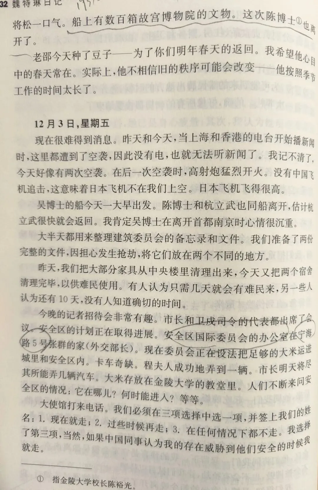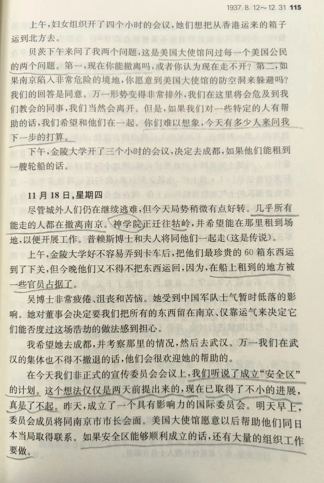 这是写于1937年11月18日的日记,美国大使馆问她是否离开,后来形势日渐危险时,一再询问,每一次,她都选择了留下。
