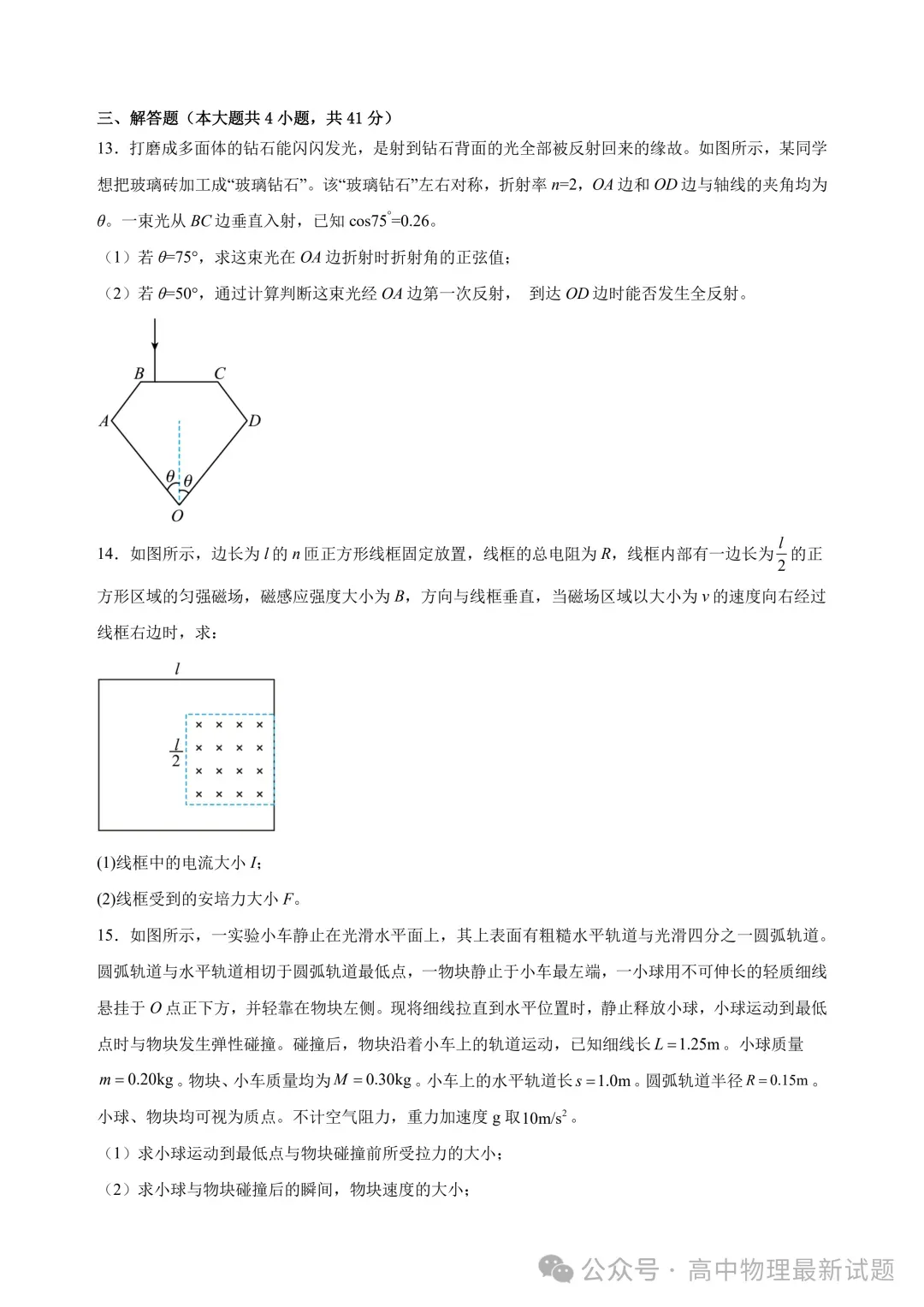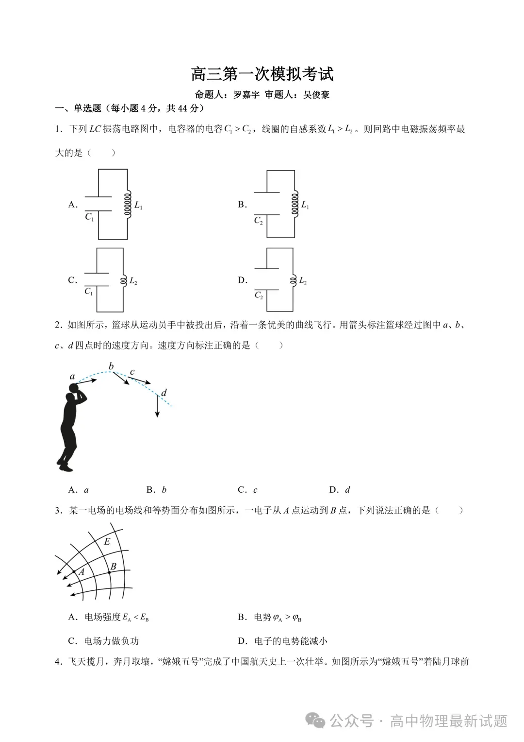>2026届江苏南京六合区名校联盟高三下学期一模数学+物理试题+答案(2026.3)