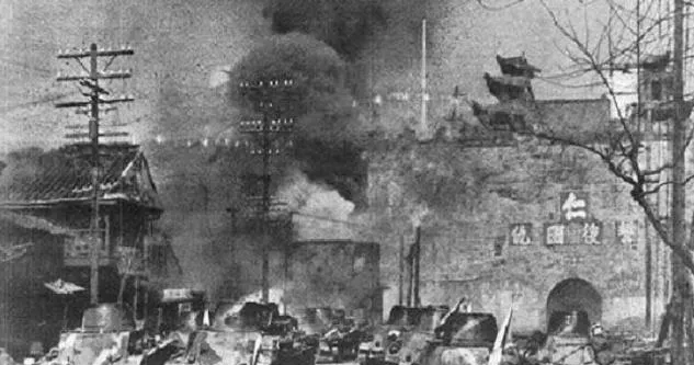 图中滚在城门口的铁甲车就是他们的主力,履带碾过青石板,火光把城洞照得一闪一闪,城墙上“仁”字牌匾在烟里发黑,我爸说那天风大,炮声顺着街口直往家里撞,现在马路上车喇叭一响,他还是会皱一下眉头。